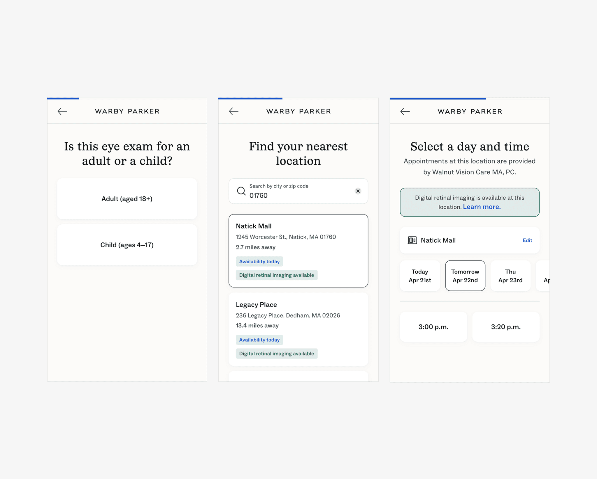 Stepper flow example from Warby Parker